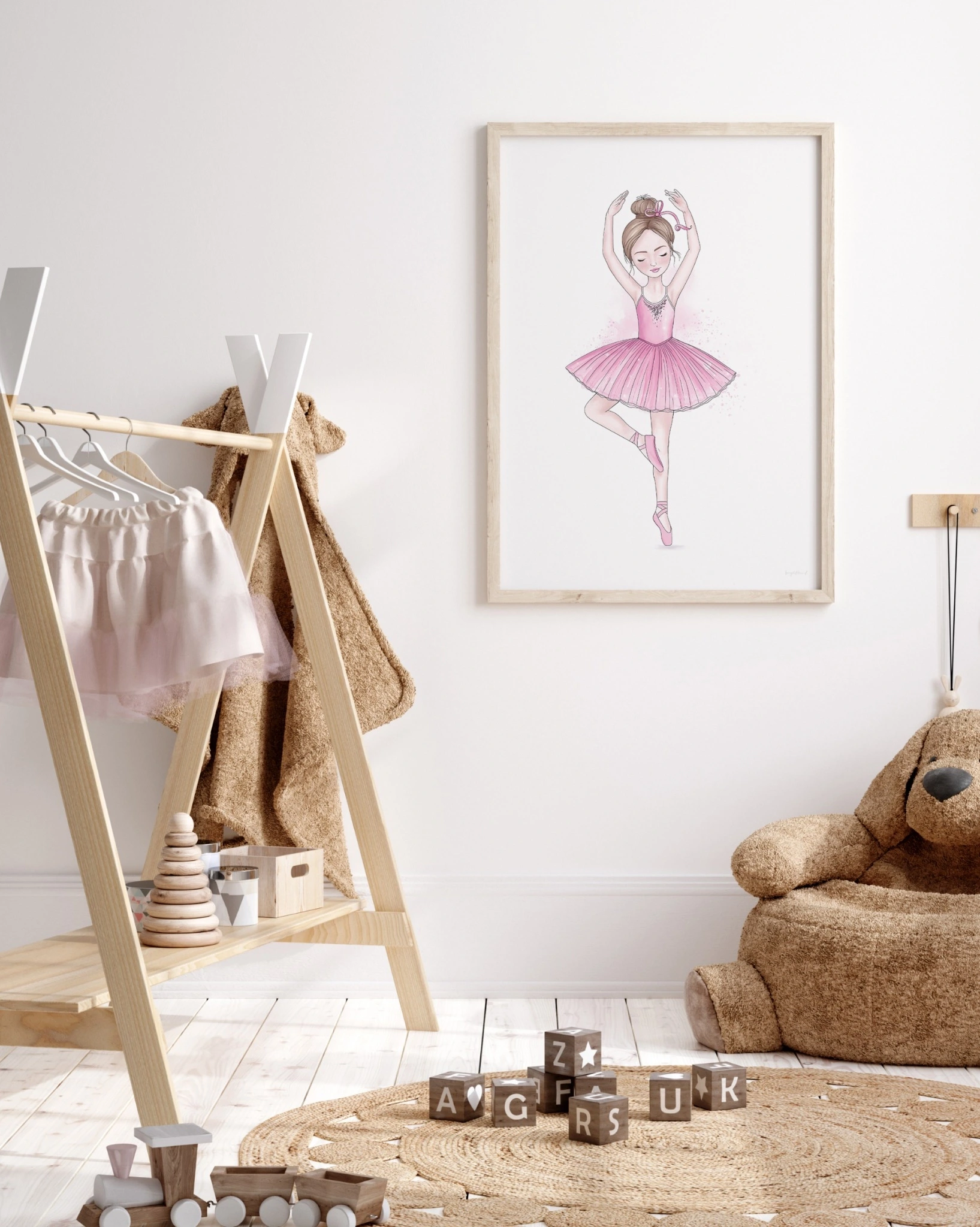 A delicate and dreamy illustration capturing the beauty of ballet in motion. With her perfectly poised pirouette, flowing pink tutu, and twinkling embellishments, this ballerina radiates elegance and confidence. A stunning addition to any ballet lover’s room, nursery, or dance studio, this print brings a sense of movement and magic to any space. A must-have for little dreamers who love to twirl!