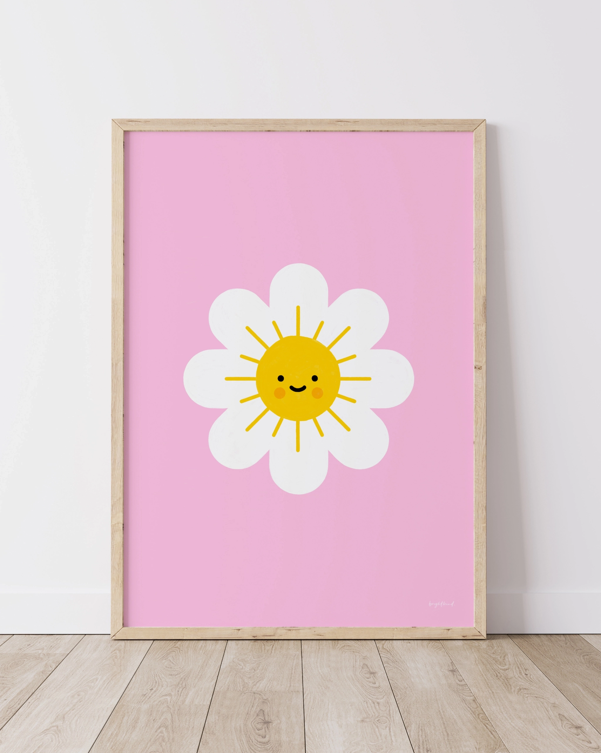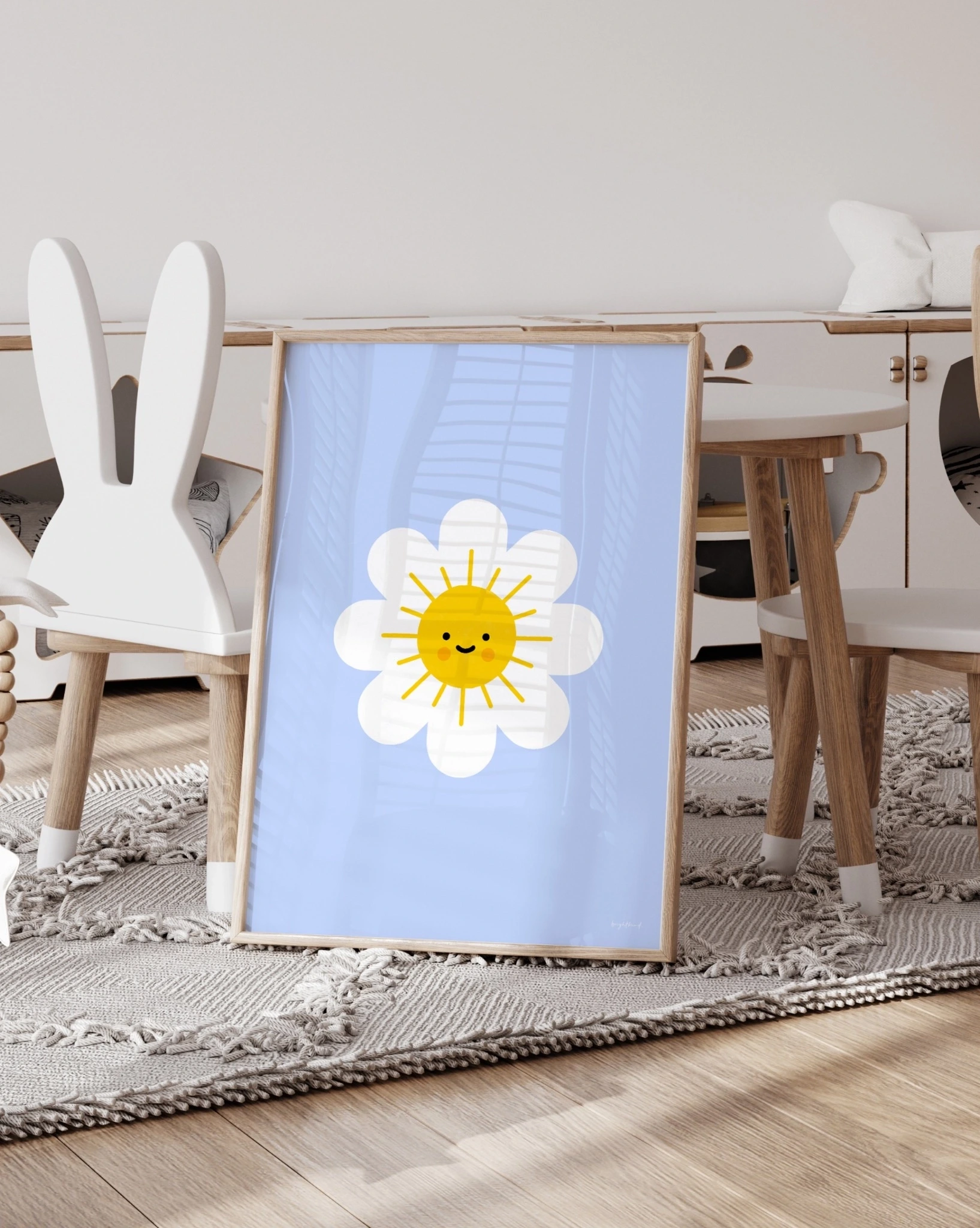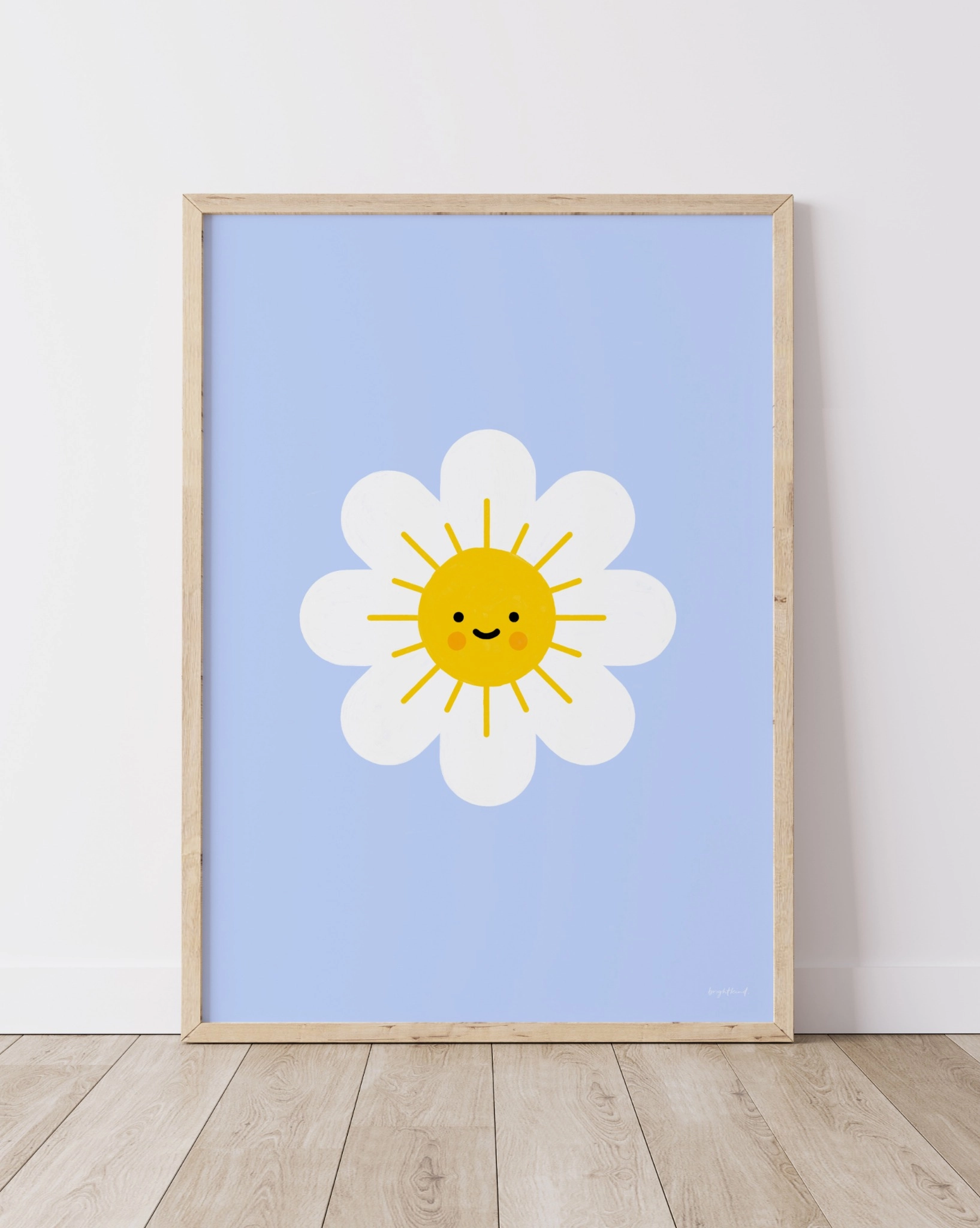 This playful design brings together the warmth of the sun and the charm of a daisy, all set against a bright background. With a cheerful smile and sunny rays, this print radiates happiness, making it the perfect addition to nurseries, playrooms, or anywhere that needs a little extra joy. A delightful reminder that every day is a chance to bloom and shine!